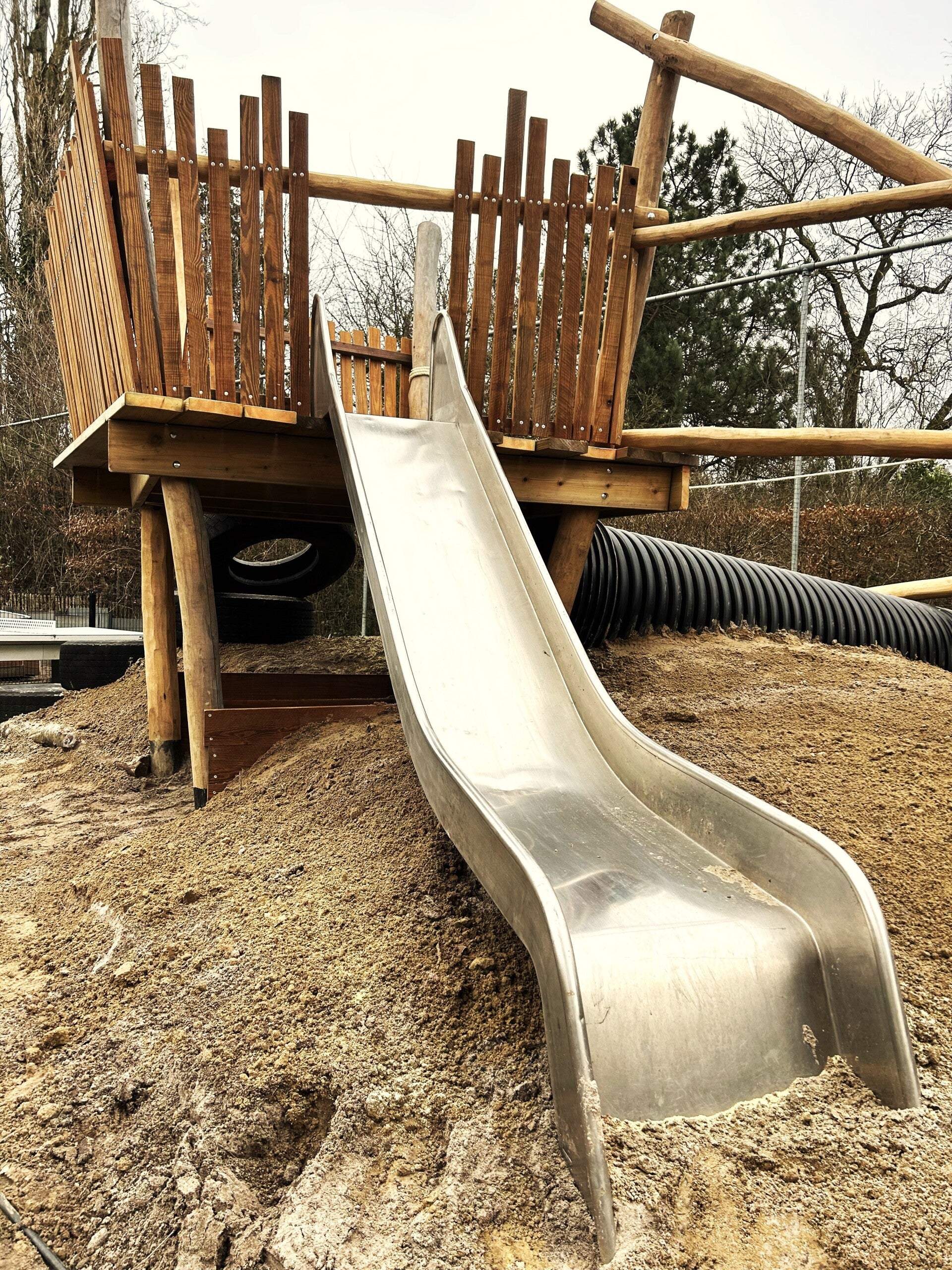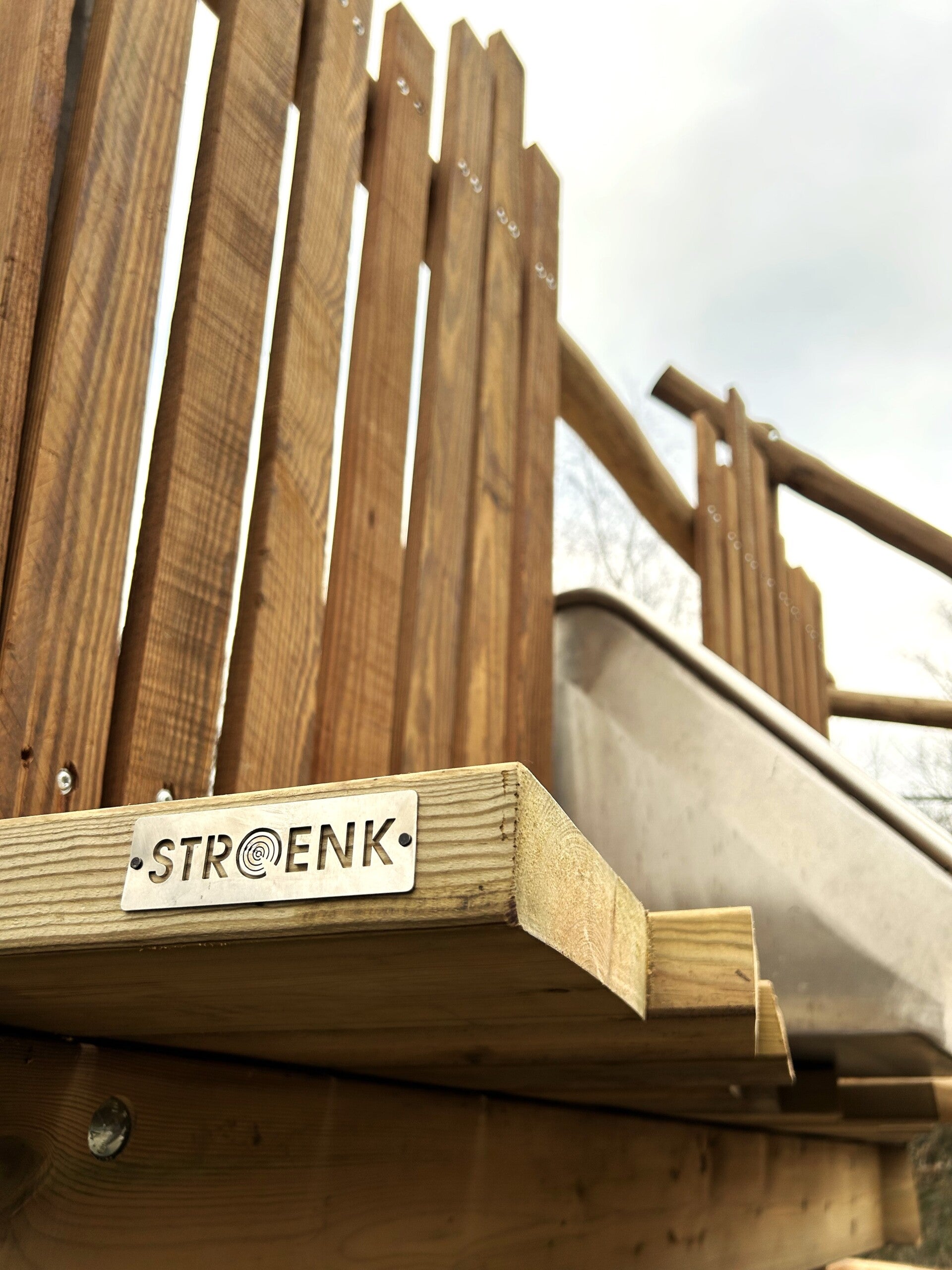 De naschoolse opvang in Hingene schakelde STROENK in voor de constructie van een nieuwe pannakooi en de aanleg van een speelheuvel. Voor beide speelelementen werd hetzelfde type thermowood gebruikt, een duurzaam materiaal bestand tegen weersinvloeden én welke zorgt voor een unieke look. In een latere fase werd de zandbak overdekt en voorzien van een leuke watertafel met pomp.